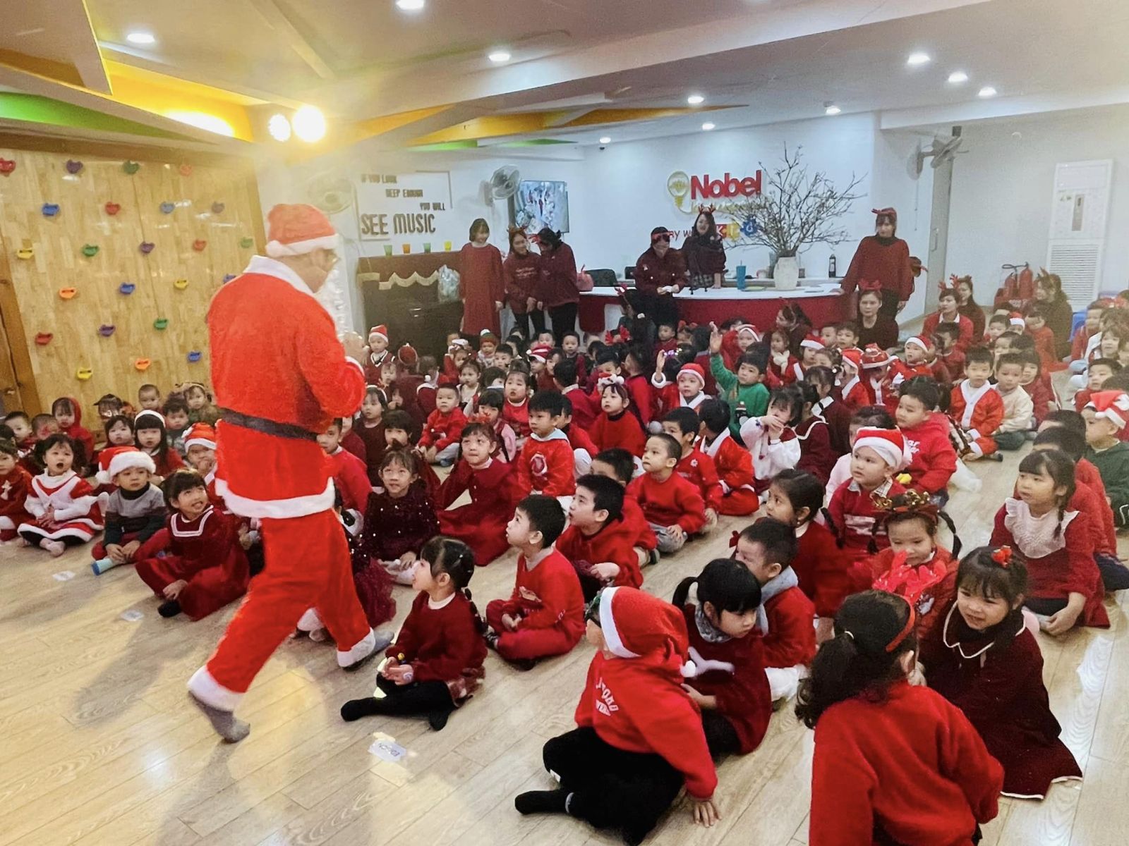 Không khí Giáng sinh đã rộn ràng khắp các lớp học, hành lang của trường Mầm non Nobel. Mọi nơi đều tràn ngập sắc màu đặc trưng của lễ hội Giáng sinh với cây thông, người tuyết, Ông già Noel và cả những bông tuyết trắng. Tất cả cùng tạo nên một bầu không khí lễ hội ấm áp, gần gũi đón chào năm mới đang cận kề.