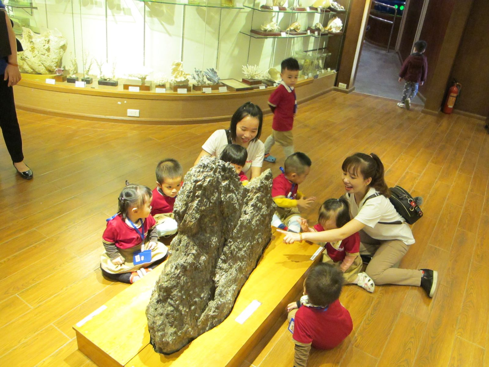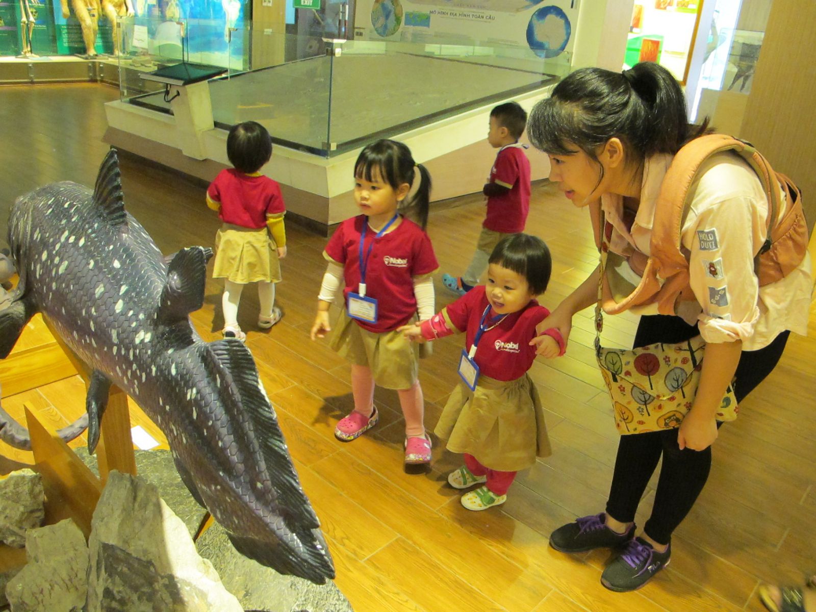 Theo chân các cô giáo đến từng khu vực trong bảo tàng, các bé được khám phá về sự tiến hóa của loài người qua các thời kỳ khác nhau, được thăm quan khu trưng bày động vật có xương sống và sinh vật biển phú với các loài như tê tê, kỳ đà, hổ, rắn, cá ngựa, sao biển, san hô, sò, ngắm nhìn hệ côn trùng nhiều màu sắc vô cùng đa dạng gồm nhiều bộ như cánh phấn, cánh cứng, chuồn chuồn, ve sầu, cánh thẳng, bọ ngựa, bọ que, được tận tay sờ và cảm nhận thế nào là hóa thạch.
