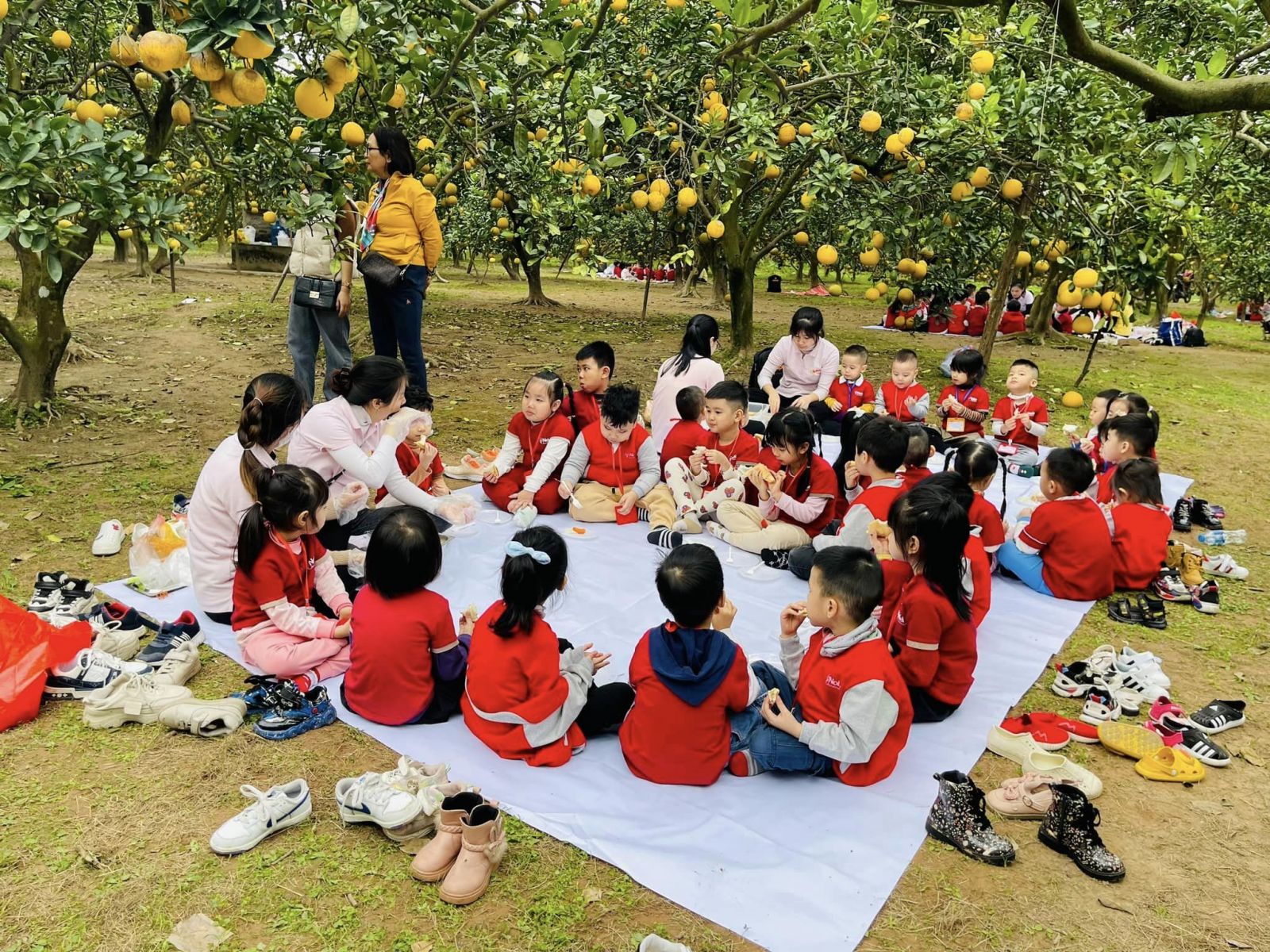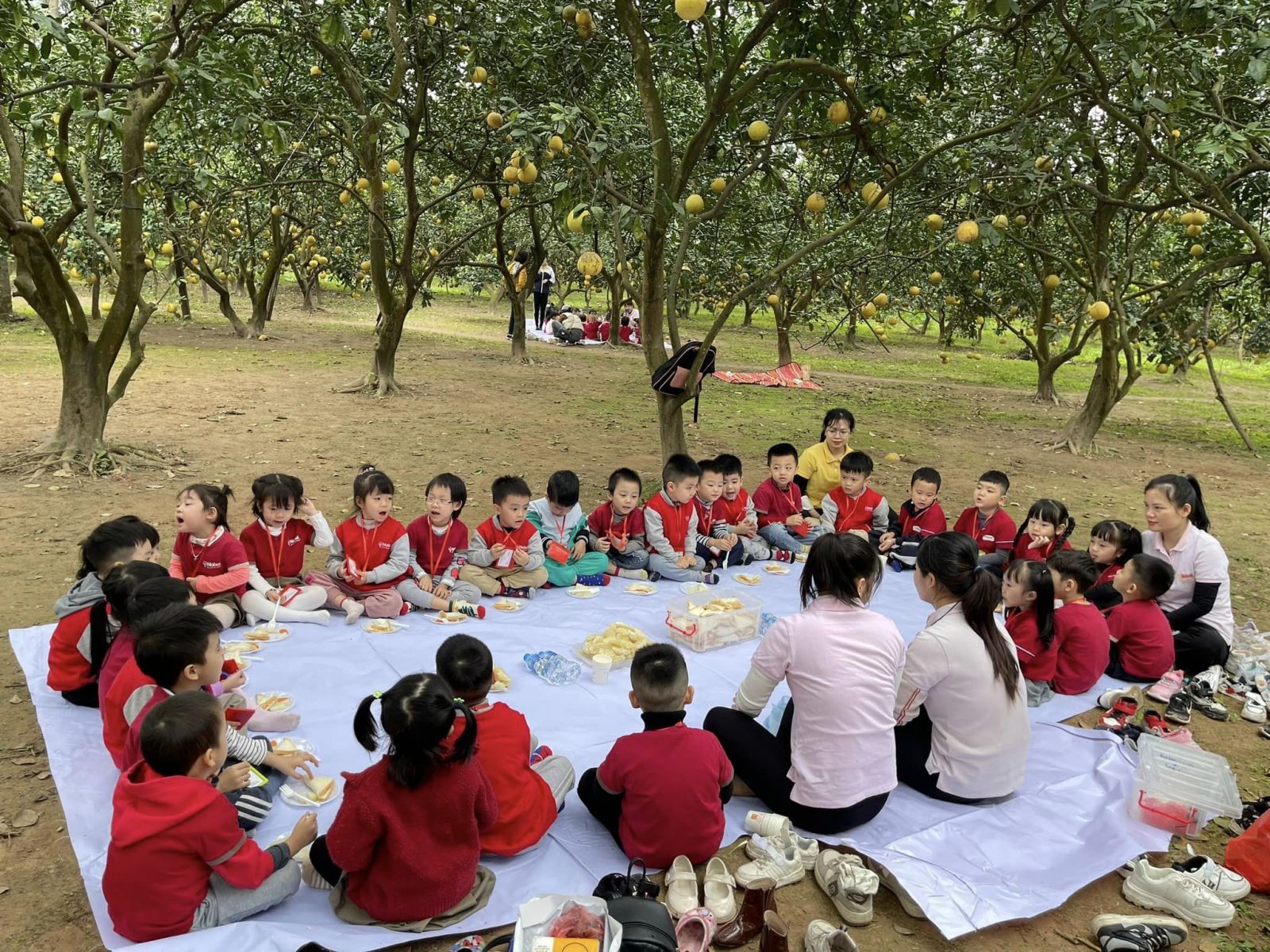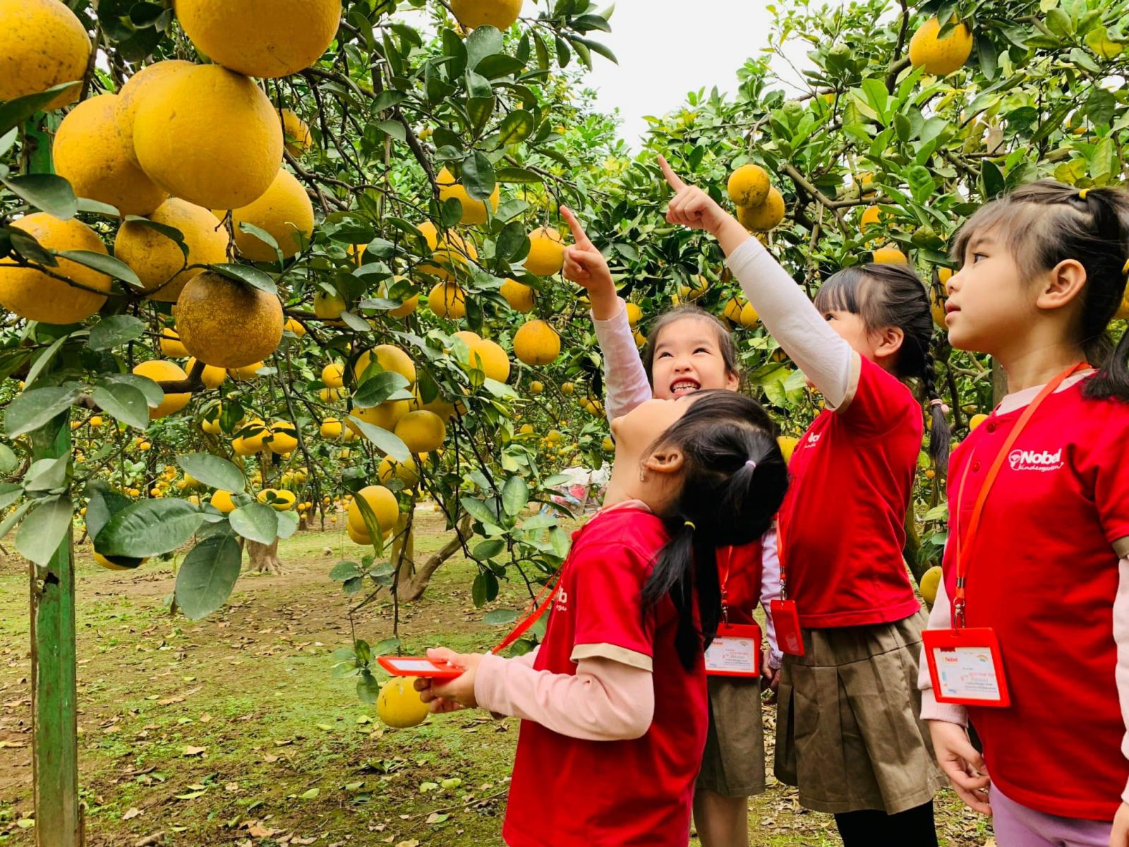 Hôm nay thời tiết nắng ấm, các bạn nhỏ mầm non Nobel đã có buổi tham quan vườn bưởi Tết vô cùng thành công.