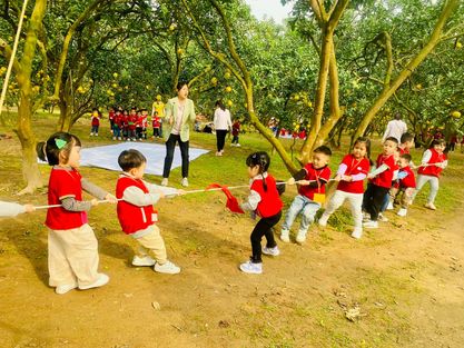 Các bạn nhỏ cùng các cô đã có những hoạt động trải nghiệm đầy thú vị. Giữa không gian rộng lớn của vườn bưởi các con cùng nhau chơi các trò chơi dân gian như: Nhảy dây; Mèo đuổi chuột; Kéo co; Bịt mắt bắt dê… Sau đó các con còn được hái bưởi để ăn tráng miệng vào bữa trưa nữa đấy bố mẹ ạ.
