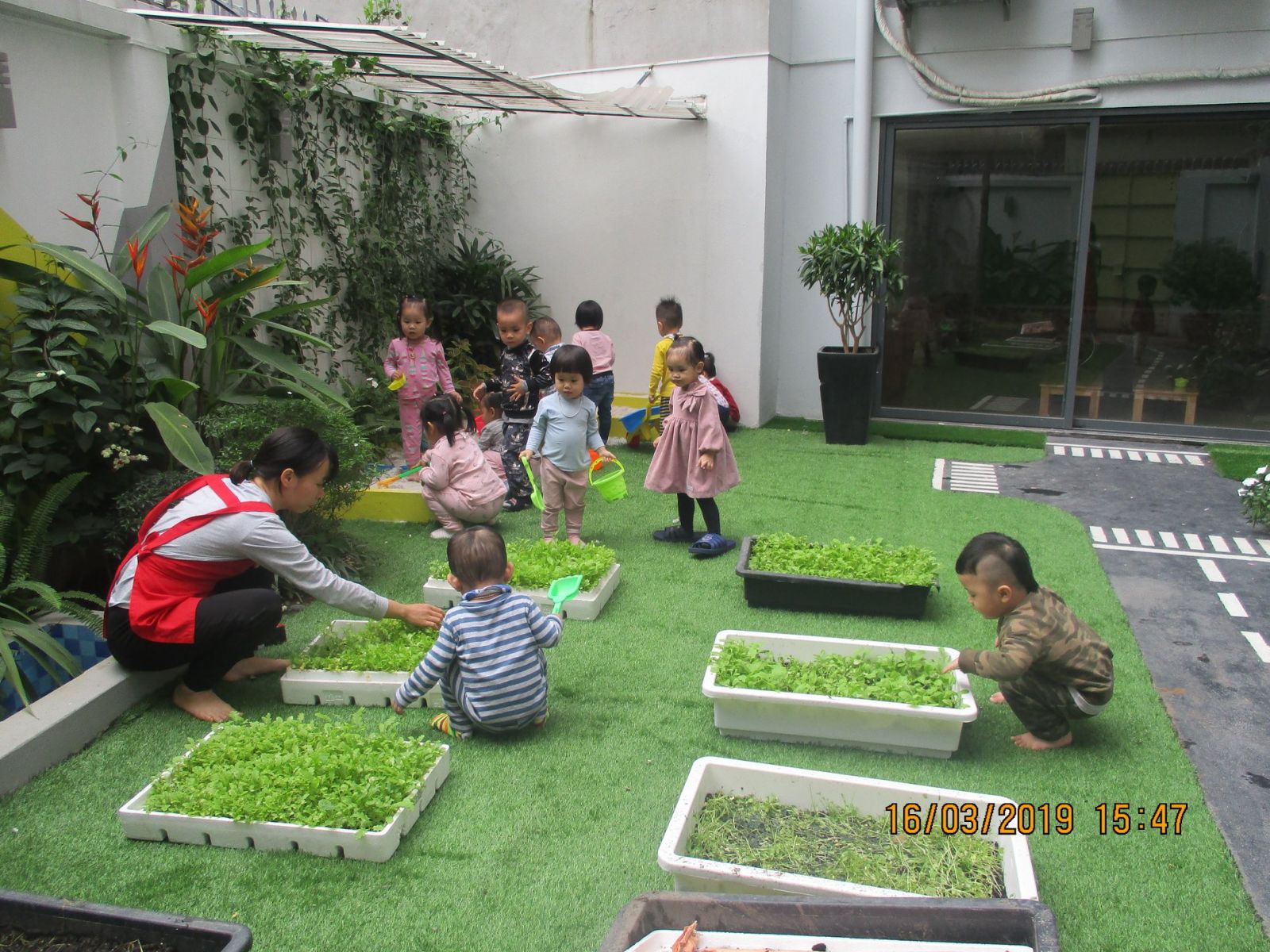 Bé của bạn sẽ vô cùng thích thú khi chăm chú ươm mầm cây xanh, hàng ngày chăm sóc cho những lá rau xanh tươi của chính mình, để cảm nhận về quá trình sinh ra - lớn lên - già cỗi, một cách hồn nhiên và trong sáng.