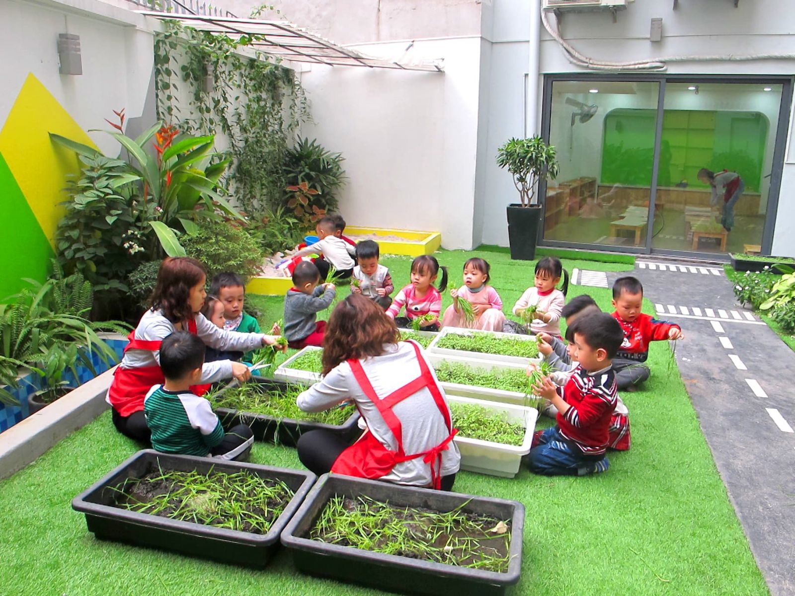 Để tạo nên một thế giới thiên nhiên thu nhỏ ngoài trời quả là điều khó với hầu hết các trường mầm non tại Hà Nội nơi “đất chật người đông”. Phần lớn các trường tư thục thường tổ chức các hoạt động giáo dục trong phòng học, định kỳ có các buổi dã ngoại để các bé được hòa vào không gian ngoài trời.
